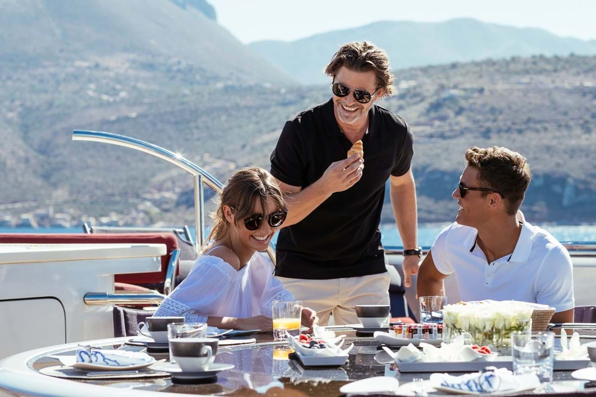 Watersports: 10m Pascoe open tender with 400hp engine, 8.8m Scorpion 850st sterndrive tender with 260hp engine, 4.3m Castoldi jet tender with 125hp engine, Kawasaki Ultra LX jetski (3 man), Kawasaki Ultra 310X-SE jetski (3 man), 3 x SeaBobs, 2 x stand up paddle boards, waterskis, wakeboards, kneeboards, 2 x windsurfers and a large quiver of sails, flyboard and jetpack, floating teak platform, diving equipment (6 sets) rendezvous diving only, 2 x Laser sailing dinghies, monoski, sofa, banana, doughnuts, snorkelling gear, full complement of kite surf gear, full complement of fishing gear. Approved RYA training centre for guests’ use of personal watercraft (jetskis)